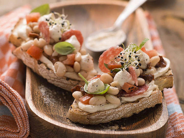 Ciabatta, ital. Bohnensalat, ital. Salami, Sprossen